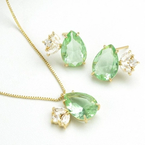 Colar Banho De Ouro 18K Gota Zircônia Verde