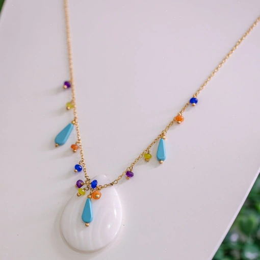 Colar Banho de Ouro 18K Gota Madrepérola Turquesa