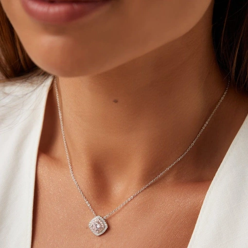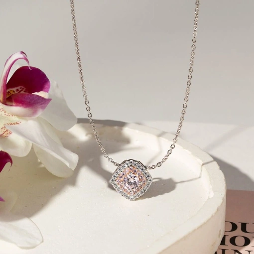 Colar Banho De Ródio Branco Com Zircônia Rosa e Branca