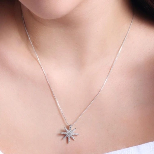 Colar Banho De Ródio Branco Estrela Com Zircônia Branca