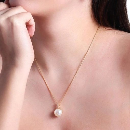 Colar Banhado a Ouro 18K Pérola Com Zircônia Champagne