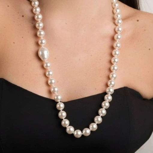 Colar Longo de Pérolas Clássicas com Pérola Barroca Central