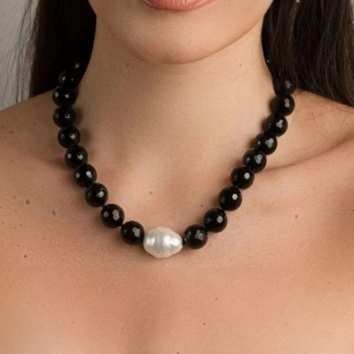 Colar Banho de Ouro 18k Pérola Barroca e Ágata Sintética