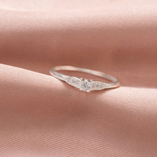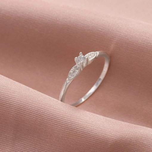 Anel Solitário Prata 925 Aro Com Zircônias Brancas