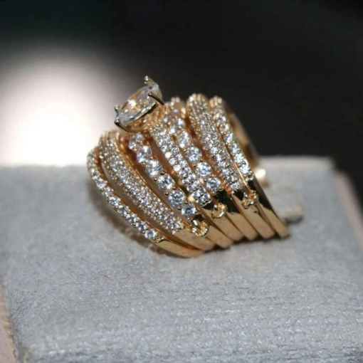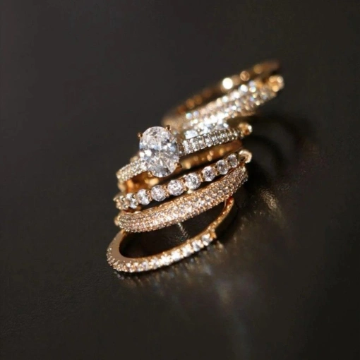 7 Anéis Cravejados de Zircônia Branca no Banho de Ouro 18k