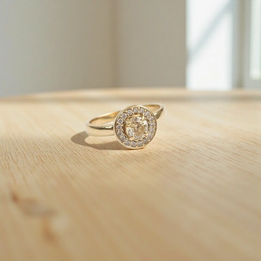 Anel no Banho de Ouro 18k Solar Zircônia Amarela e Brancas