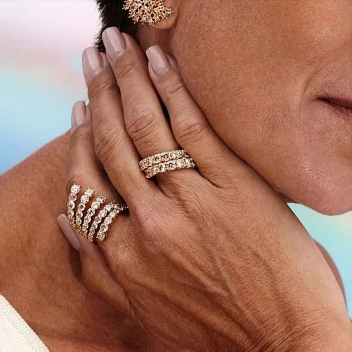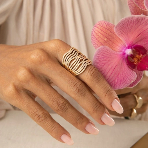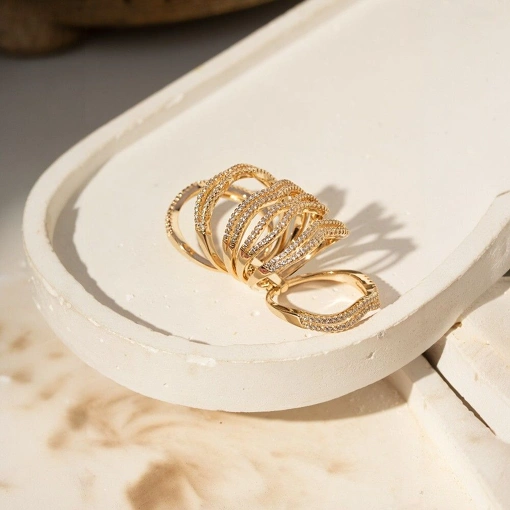 Anel Curvas no Banho de Ouro 18k 6 Aros Com Zircônias