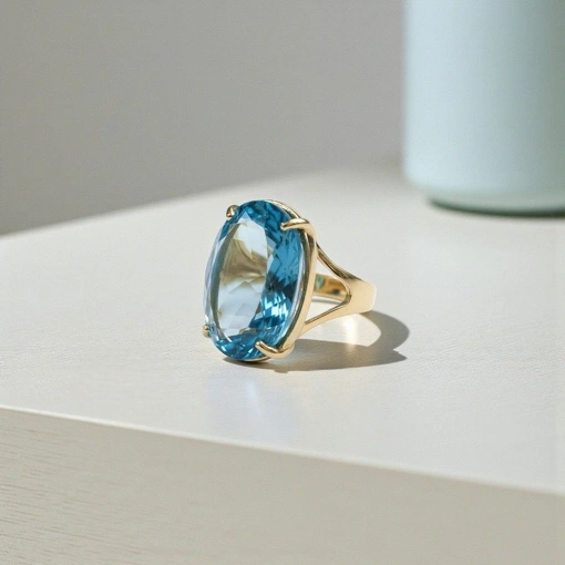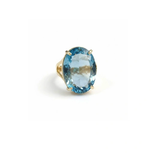 Anel no Banho de Ouro 18k Oval Com Cristal Sintético Azul