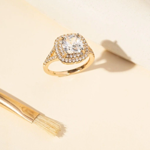 Anel no Banho de Ouro 18k Quadrado Cravejado Com Zircônias