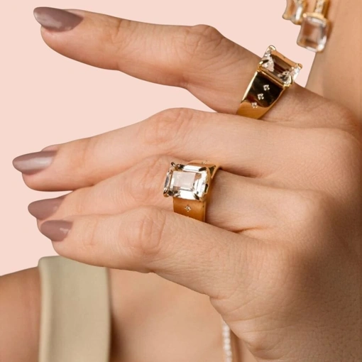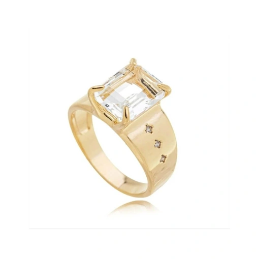 Anel no Banho de Ouro 18k Com Zircônia Branca Retangular