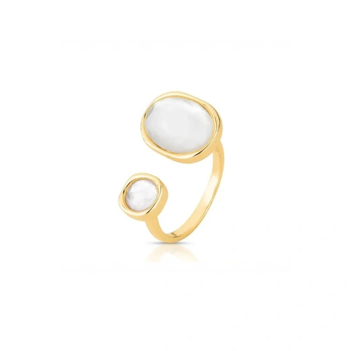 Anel Aberto no Banho de Ouro 18k Com 2 Madre Pérolas Orgânicas
