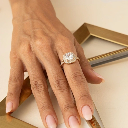 Anel Solitário Banhado A Ouro 18K Com Zircônias Brancas