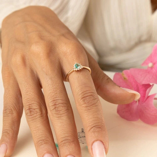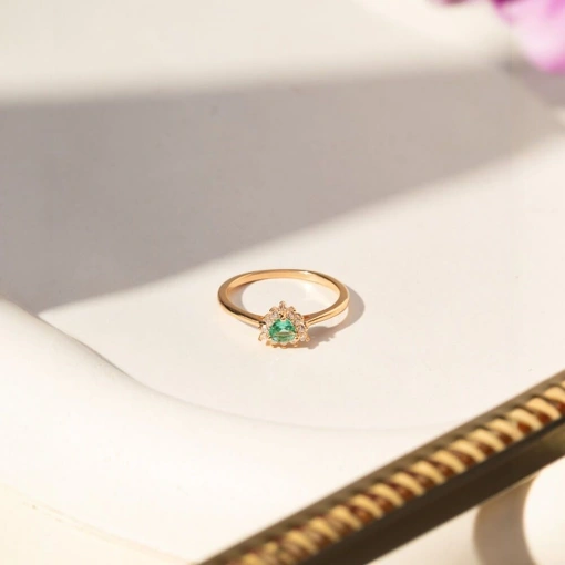 Anel no Banho de Ouro 18k Triângulo Com Zircônia Verde e Brancas