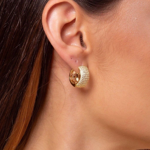 Brinco Banho de Ouro 18k Argola Com Zircônias Brancas