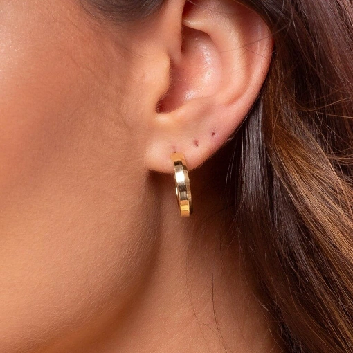 Brinco Banho de Ouro 18k Meia Argola Chanfrada Lisa