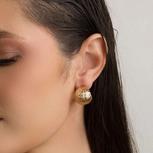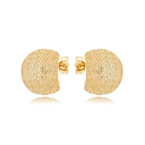 Brinco Banho de Ouro 18k Meia Argola Texturizada