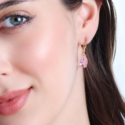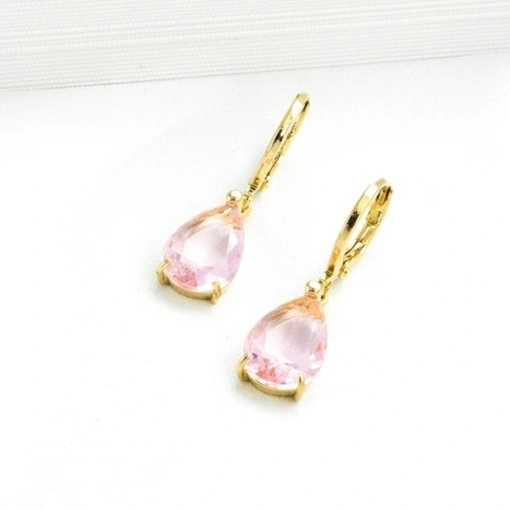 Brinco Banho De Ouro 18K Gota Com Zircônia Rosa