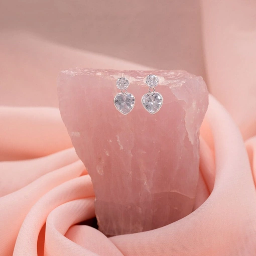 Brinco Prata 925 Coração Com Zircônia Branca 8MM