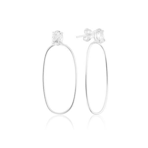Brinco Prata 925 Fio Oval Zircônia Branca
