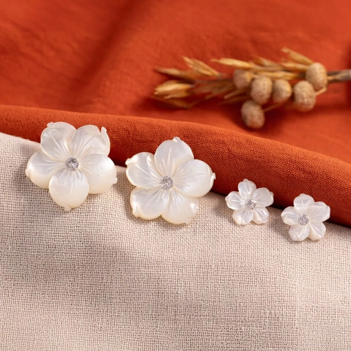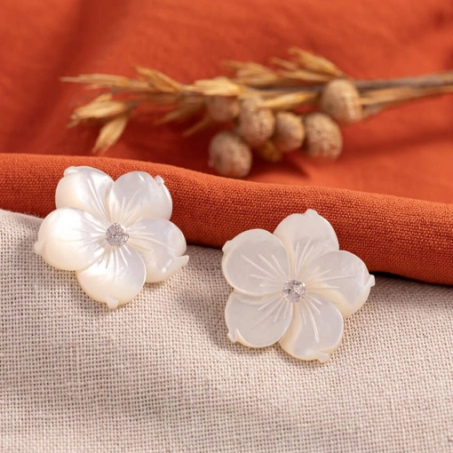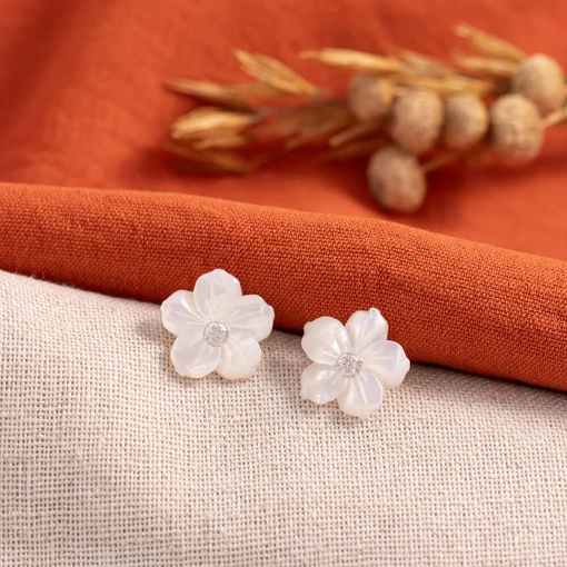 Brinco Prata 925 Flor Madrepérola Com Zircônia Branca