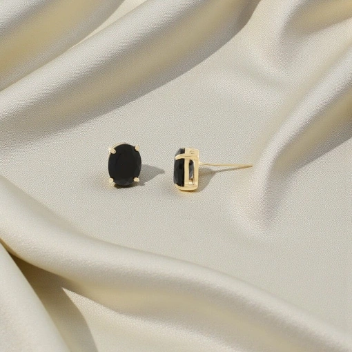 Brinco no Banho de Ouro 18k Com Cristal Sintético Oval Preto