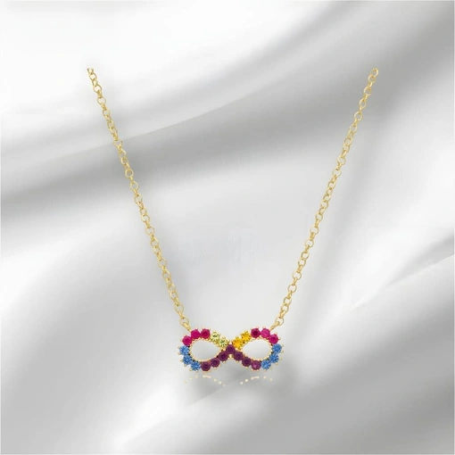 Colar Prata 925 Com Banho De Ouro 18K Infinito Zircônia Colorida