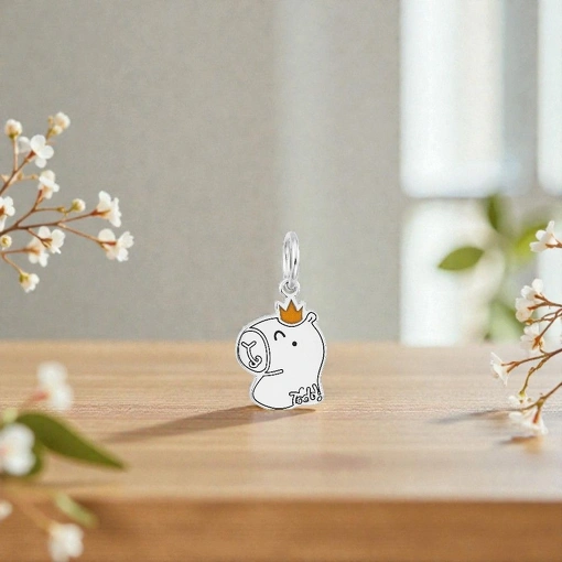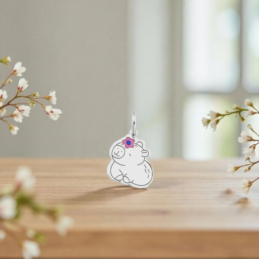 Pingente Prata 925 Capivara Com Florzinha Esmaltada