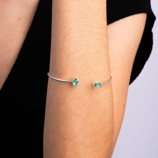 Bracelete Prata 925 Com Zircônia Oval Cor Turmalina