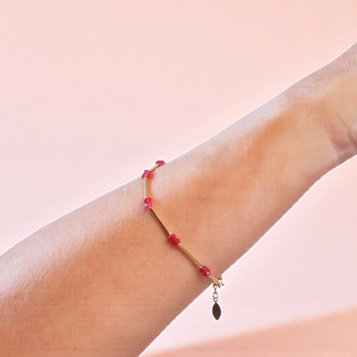 Pulseira Banho de Ouro 18k Canutilho Com Jade Rubi