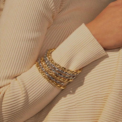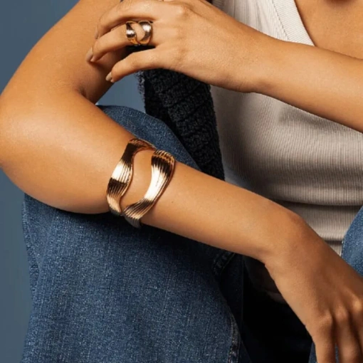 Bracelete no Banho de Ouro 18k Ondas Texturizadas