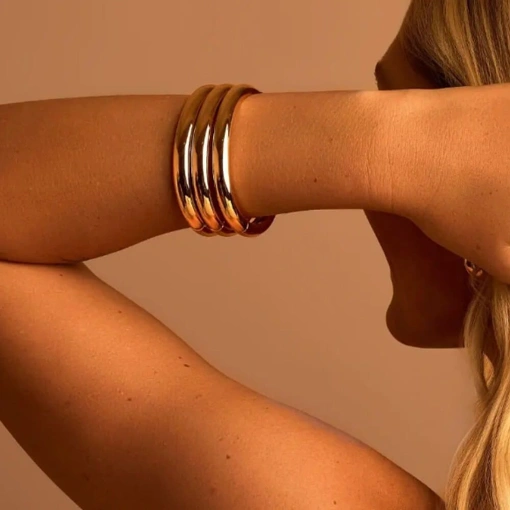 Bracelete Banhado a Ouro 18k Largo e Liso