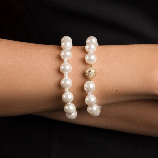 Pulseira Banhada a Ouro 18k Pérola Shell Com Fecho Imã Cravejado