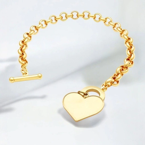Pulseira Banhada A Ouro 18K Elo Português Com Coração