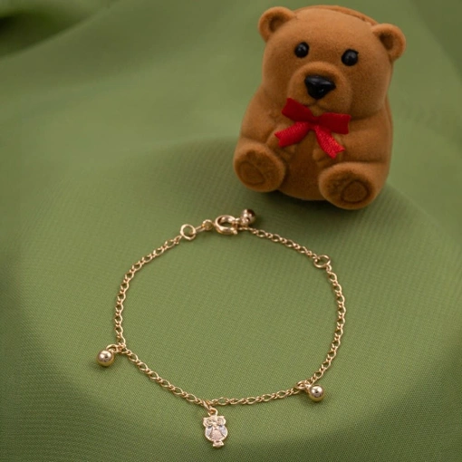 Pulseira Infantil Banhada A Ouro 18K Coruja Com Bolinhas