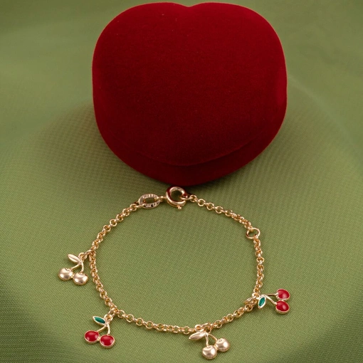 Pulseira Infantil Banhada A Ouro 18K Cerejas Esmaltadas