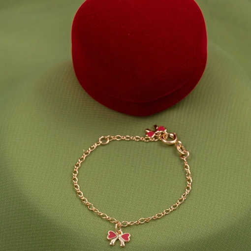 Pulseira Infantil Banhada A Ouro 18K Laço Esmaltado