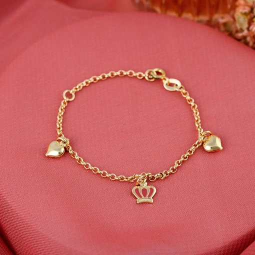 Pulseira Infantil Banhada A Ouro 18K Coração e Coroa